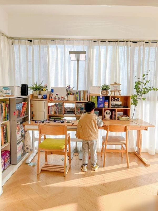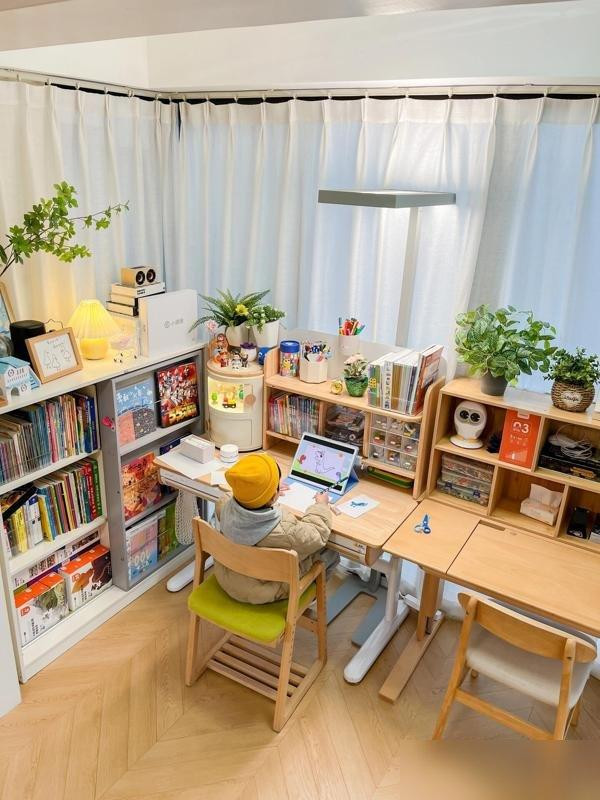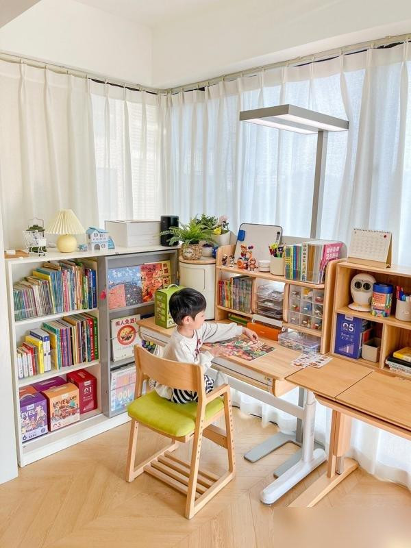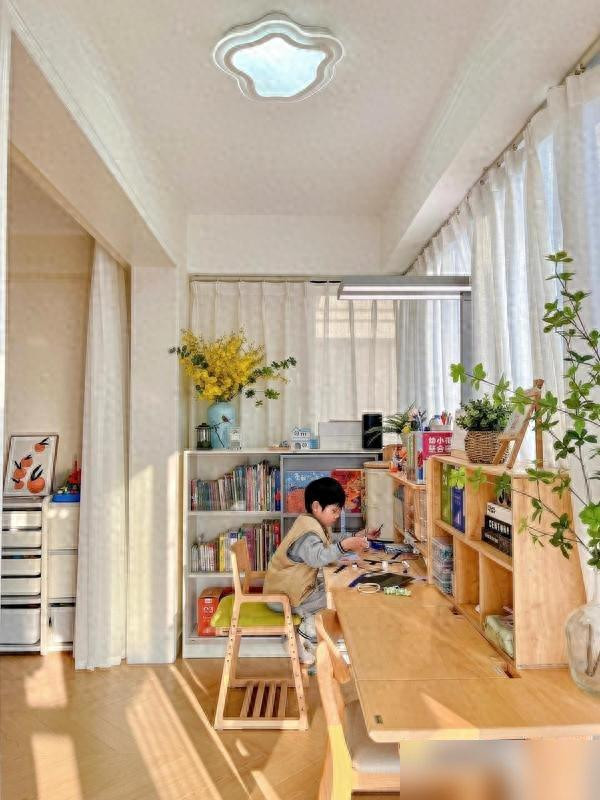 不是买了多贵的进口书桌,也没搞复杂的装修,就是把“闲置阳台”变成了“孩子的地盘”——这事儿的核心,其实是给了孩子“专属感”。就像我们小时候想要个带锁的抽屉,想要墙上贴自己画的画,现在的孩子要的是“这是我的空间”:书桌角能贴他的恐龙贴纸,书架第三层放他的漫画书,窗帘选他喜欢的浅蓝,连台灯都是他挑的“宇航员”造型。你看,不是家具多高级,是“这东西属于我”的感觉,让孩子主动想坐在那儿。