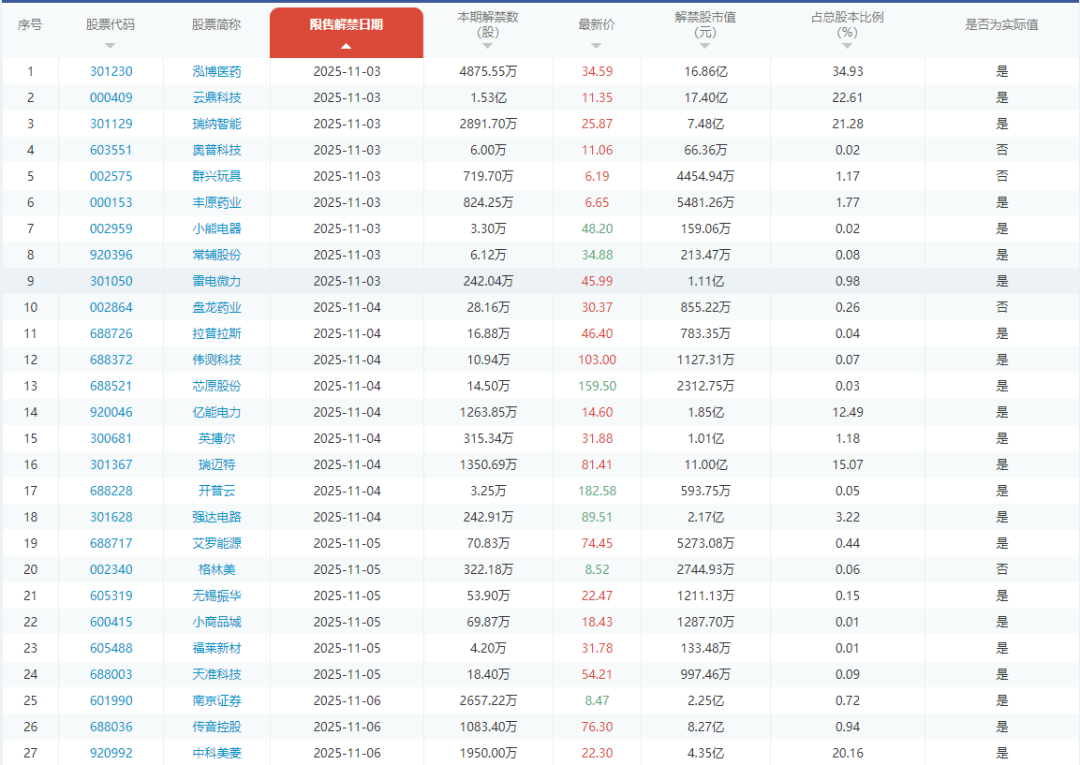 ▼限售解禁