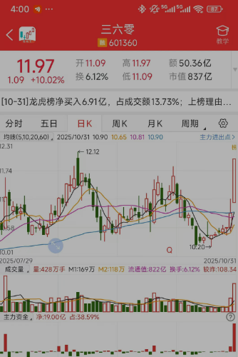 盘后国常会这个利好,对下游AI应用是火上浇油了。AI应用明星股有万兴科技、视觉中国、昆仑万维、掌阅科技等等。另外三六零今天涨停了,两大游资围猎,作手新一爆买2个亿,桑田路助攻1.4个亿。