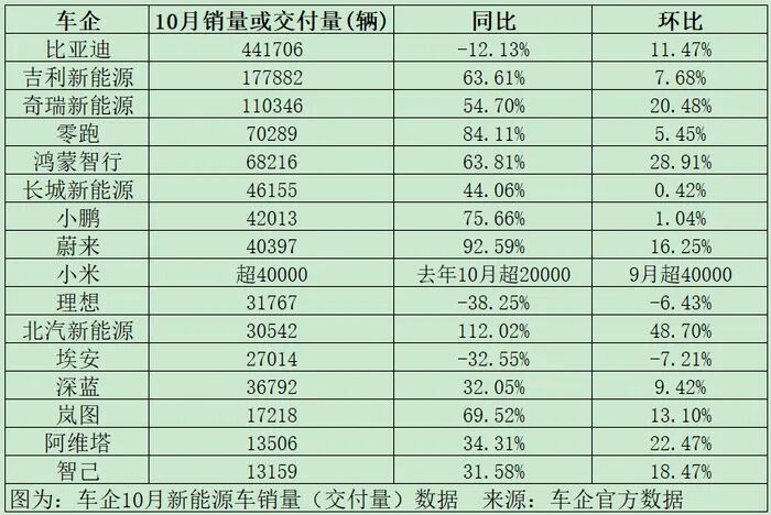 1、“金九银十”效应显现 10月新能源汽车卖爆了!7家新势力创新高、比亚迪狂卖44万台