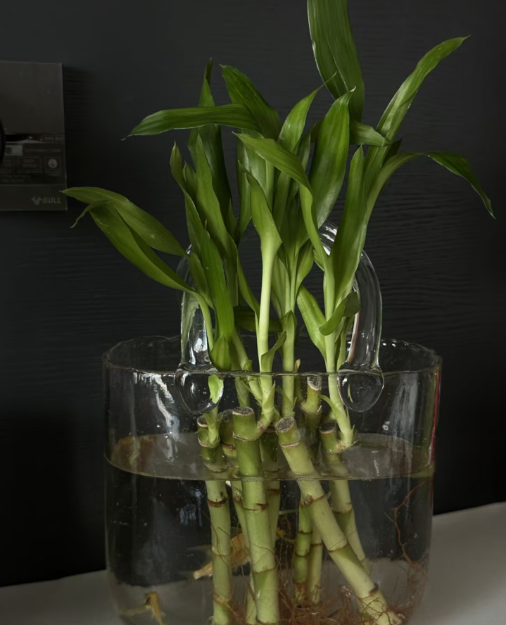 它是真的省心:水培不用管土壤,10 天换一次晾过的自来水(怕生水刺激根),水位没过竹根一半就行,客厅散光处刚好,不用晒大太阳。有次我出差两周没换水,回来以为竹子会发黄,结果根须还是白白的,叶片只是轻微发蔫,换完水第二天就精神了,连新冒的小芽都没掉。